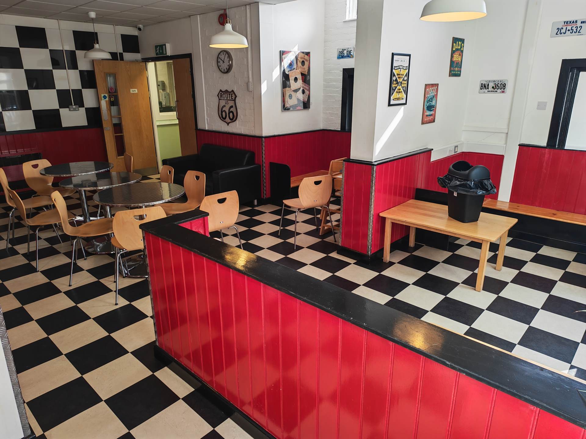 Access the centre through the gates, follow the path, and the entrance is up the ramp on the left‑hand side.