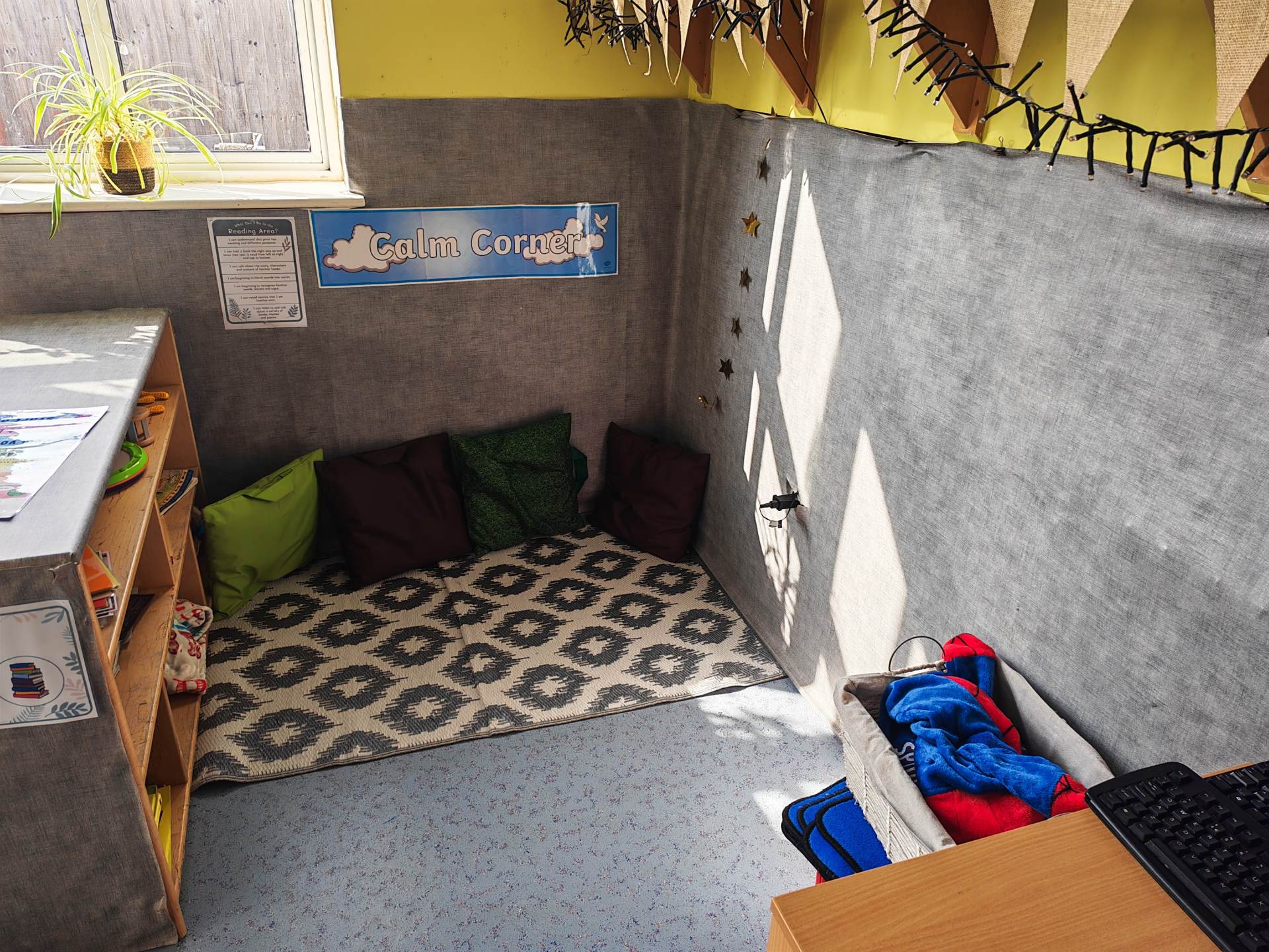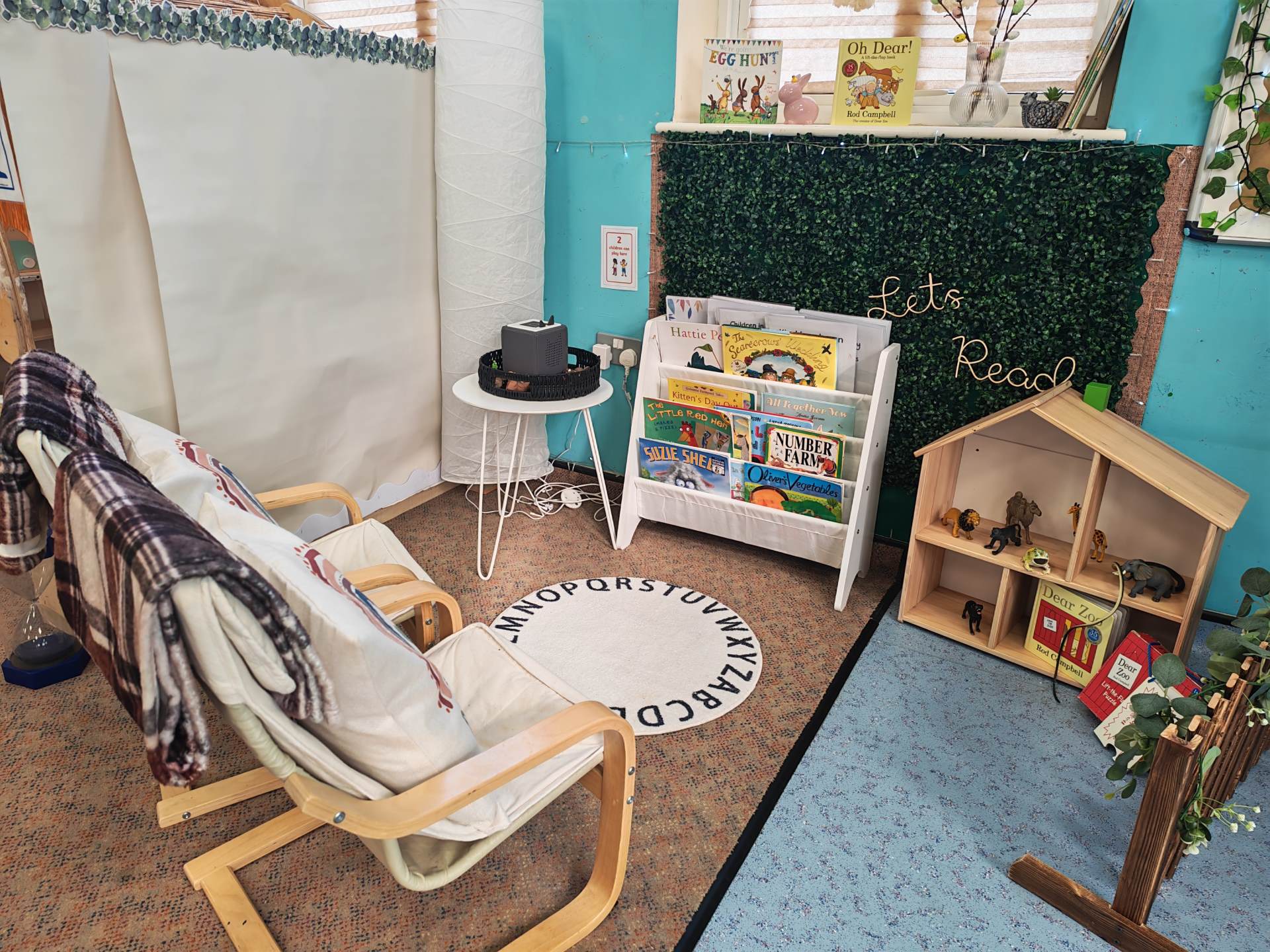 Soft lighting, including gentle fairy lights, helps create a soothing atmosphere, while cosy, stimulating areas provide a home from home feel where children can relax, grow, and flourish.