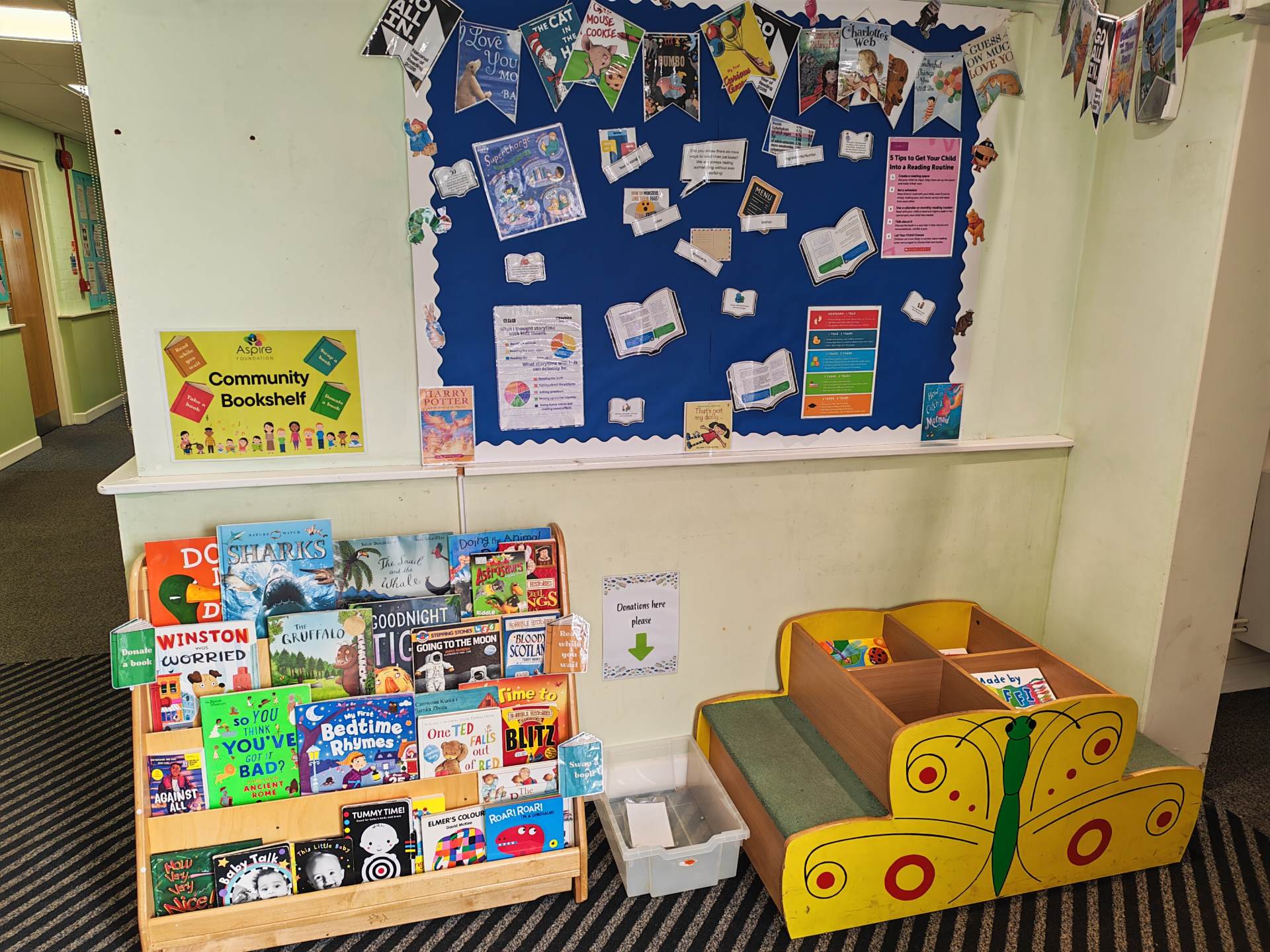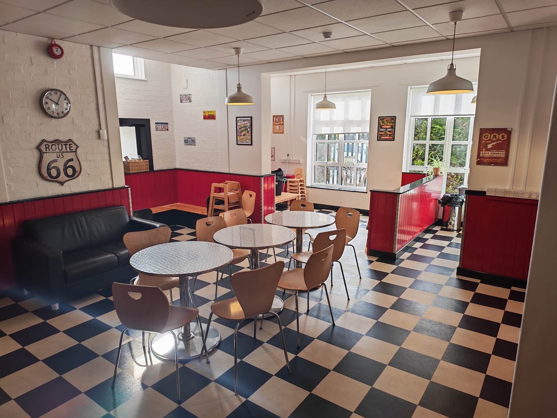 Access the centre through the gates, follow the path, and the entrance is up the ramp on the left‑hand side.