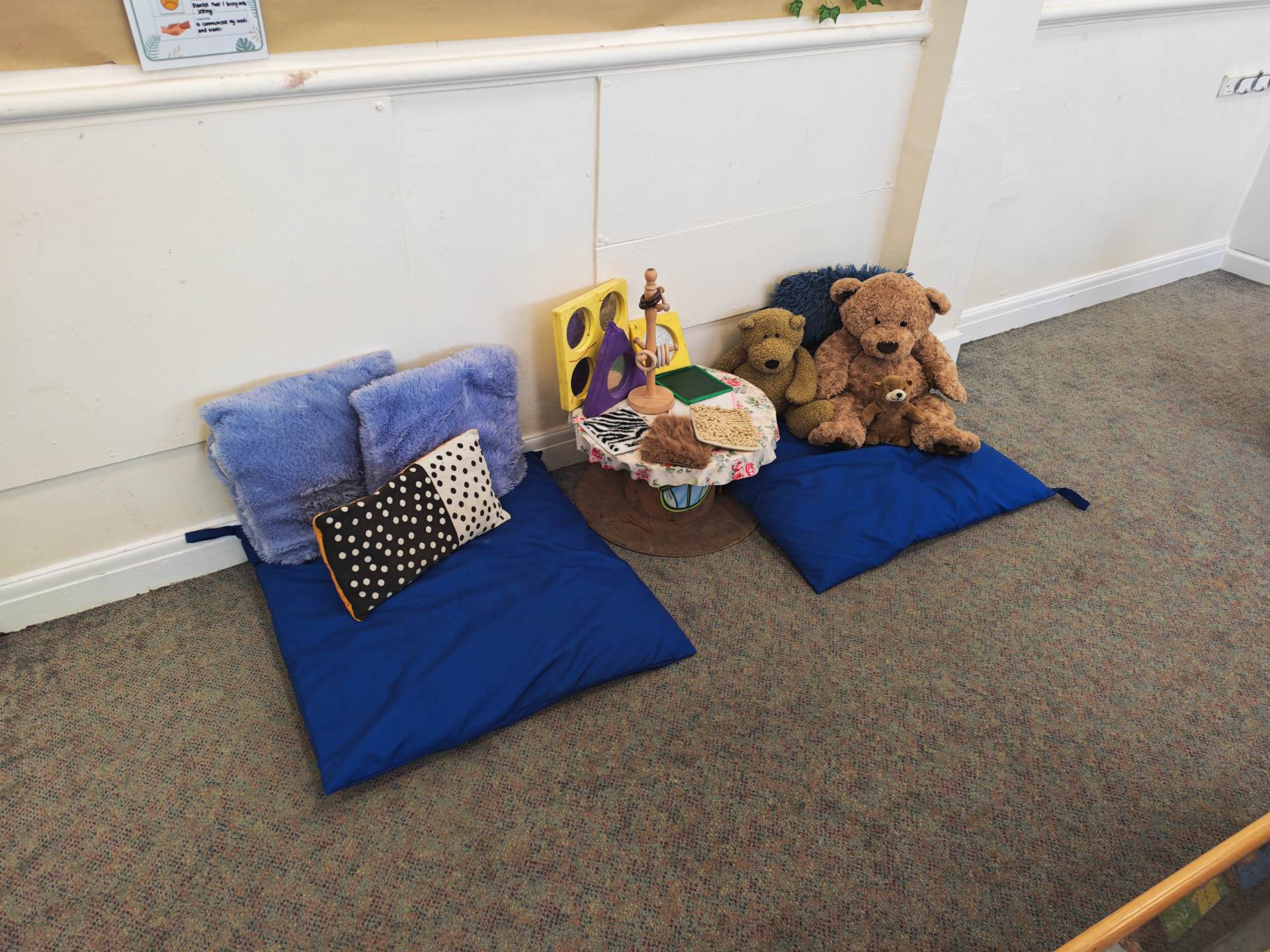 Soft lighting, including gentle fairy lights, helps create a soothing atmosphere, while cosy, stimulating areas provide a home from home feel where children can relax, grow, and flourish.